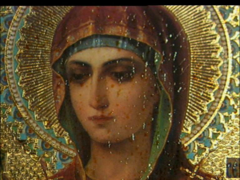 Диакон Владимир Василик о мироточении иконы «Умягчение злых сердец»: "Икона «Умягчение злых сердец» стала мироточить постоянно. Сначала у Божией Матери появилось маслянистое пятно на руках. Потом из него стали течь струйки мира. Временами оклад иконы становился столь тяжелым, что достигал 25 кг. Однако икона источала не только миро.
