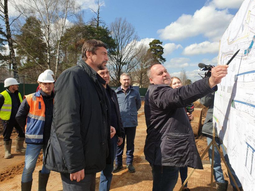 Министр транспорта и дорожной инфраструктуры Московской области Алексей Гержик осмотрел ход строительства путепровода через железную дорогу у станции Дедовск.