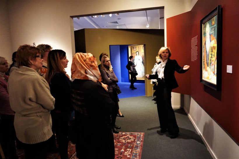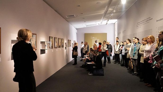 Для представителей туриндустрии была проведена обзорная экскурсия по экспозиции Бориса Кустодиева «Венец земного цвета». После экскурсии прошли презентации еще двух образовательных программ – «Особенности русского чаепития» (тематическое семейное занятие) и «Музейные зарисовки на экспозиции» для учеников художественных школ.