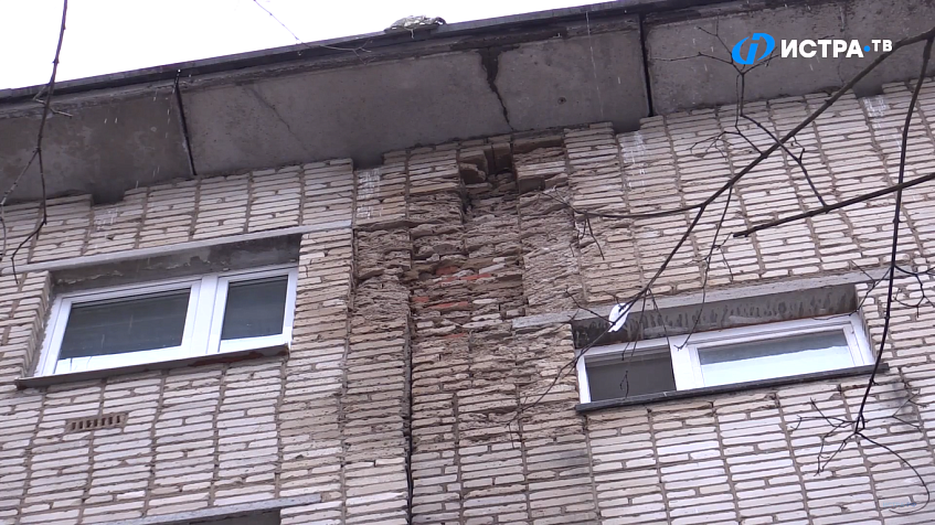 Кирпичи тут падают практически на голову выходящим из подъезда жильцам. Причина несчастий кроется на крыше дома. С крыши вода попадает в температурный шов, затем заморозки делают свою работу. Вода превращается в лёд, устройство шва не выдерживает нагрузок и расширяется, вытесняя облицовочный кирпич.