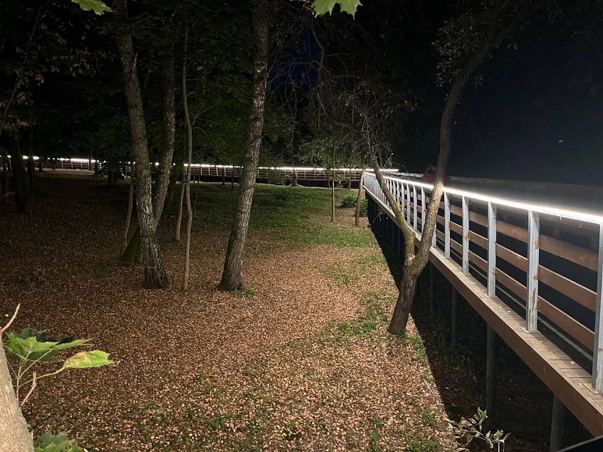 Со временем световая лента, которая освещала путь посетителям парка, пришла в негодность. Светодиодная подсветка ощутимо нагревается при работе, поэтому для сохранения деревянной тропы специалисты установили железные конструкции на перилах, а также заменили кабельные световые линии протяжённостью в 355 метров.