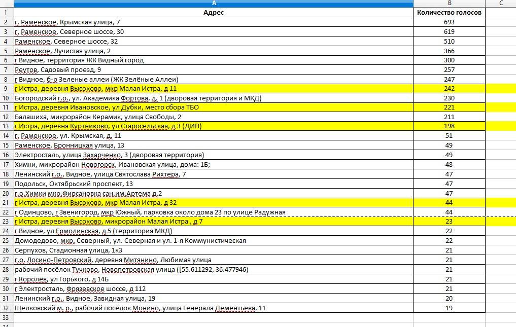 На голосование было вынесено 692 адреса из 40 городских округов. Перечень объектов формировался ГУРБ Московской области согласно обращениям жителей Подмосковья, поступивших на портал «Добродел» с февраля 2021 года по февраль 2022 года.