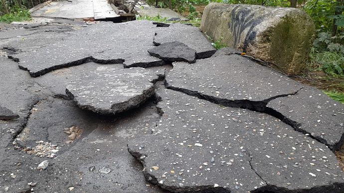 Просели плиты на дороге, ведущей к микрорайону Восточный.