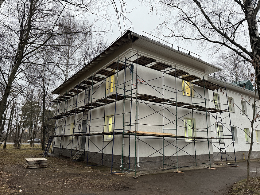 Фасад Снегирёвской поликлиники ремонтируют через 6 лет после капремонта