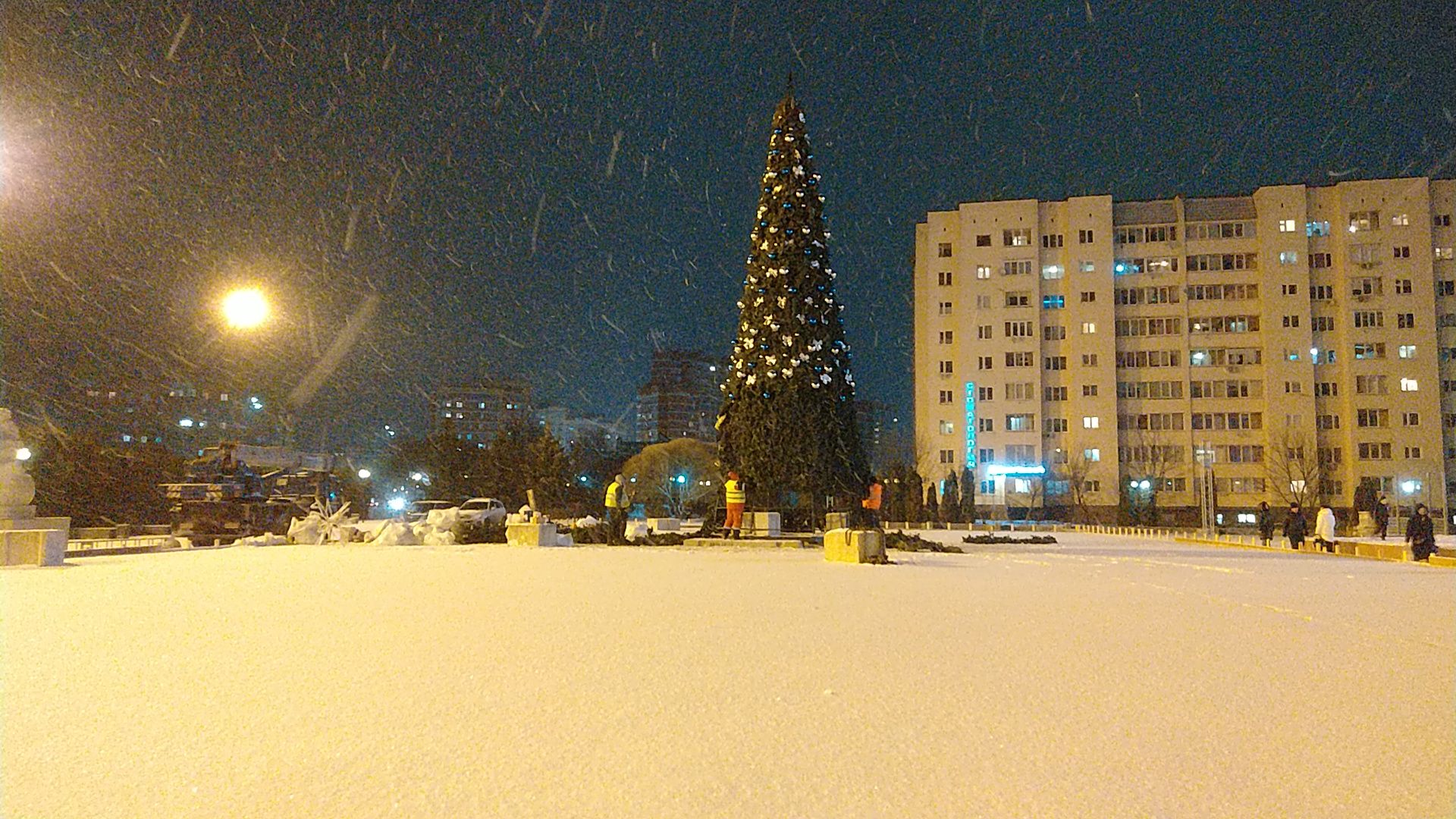 Городские службы вовсю украшают округ к предстоящим новогодним гуляньям.