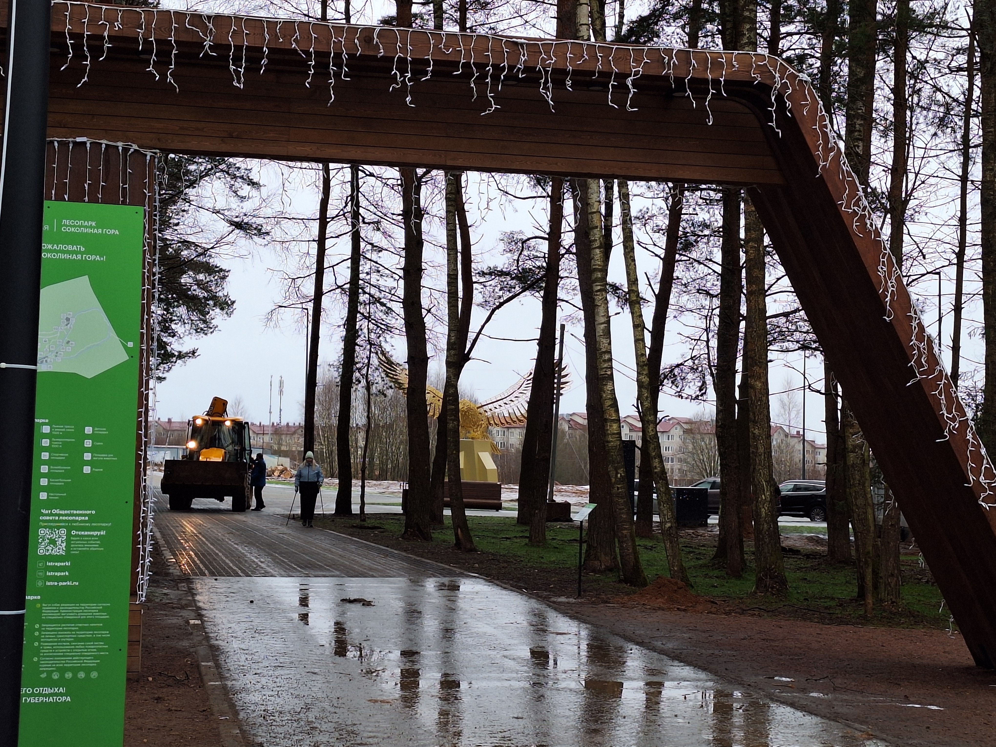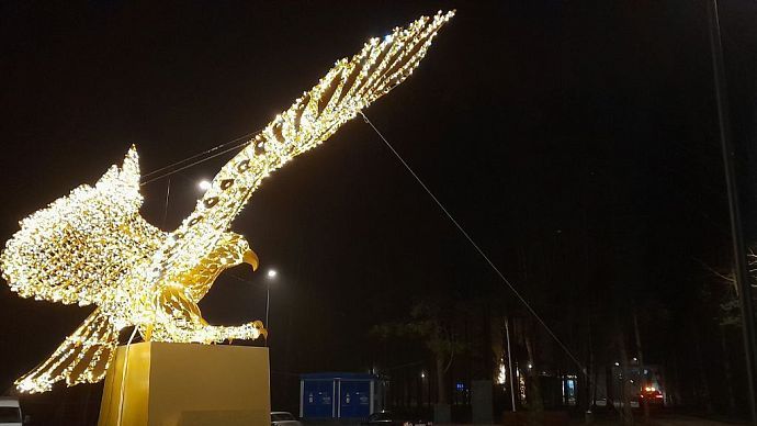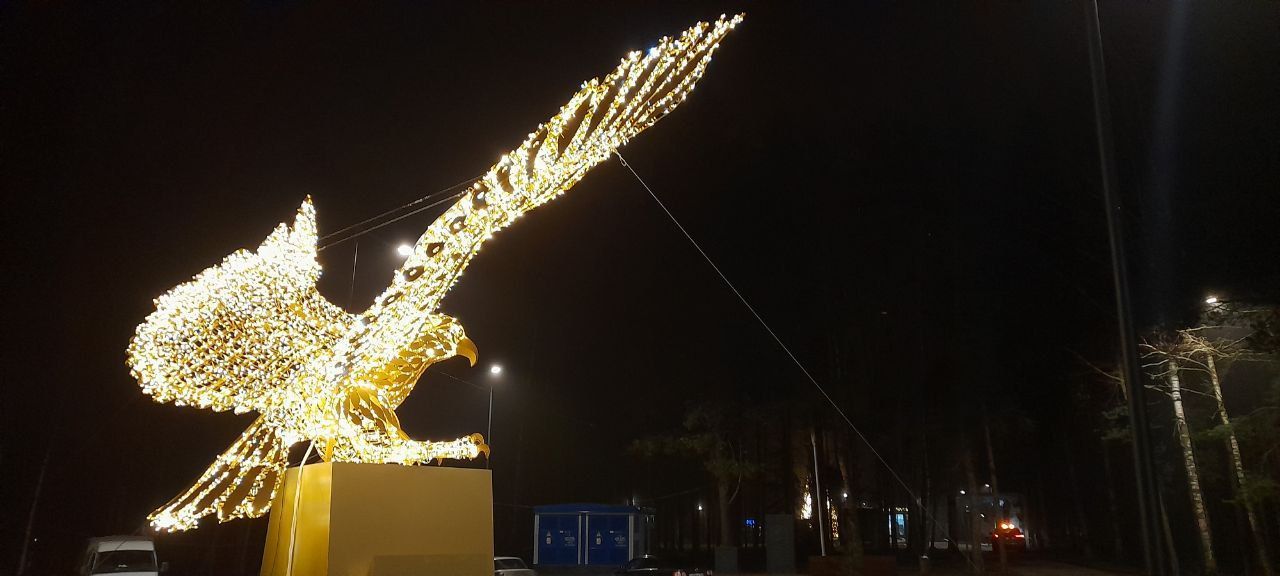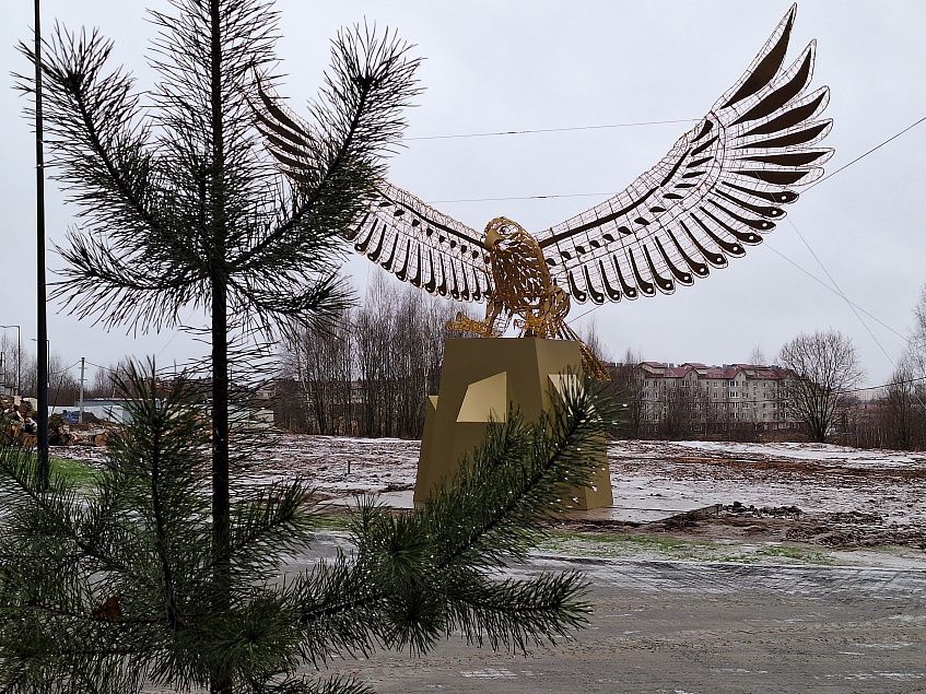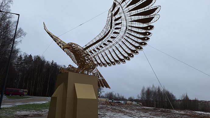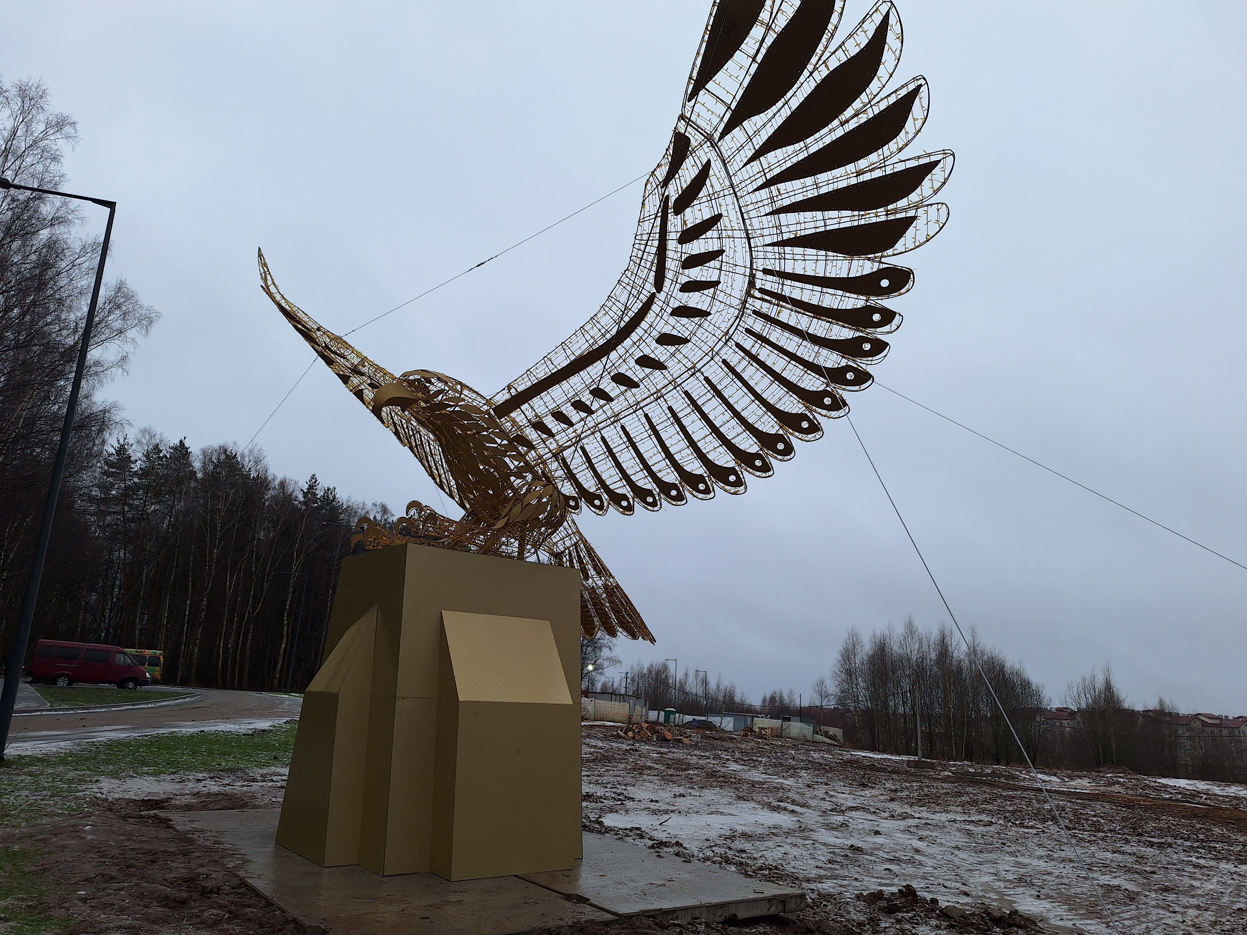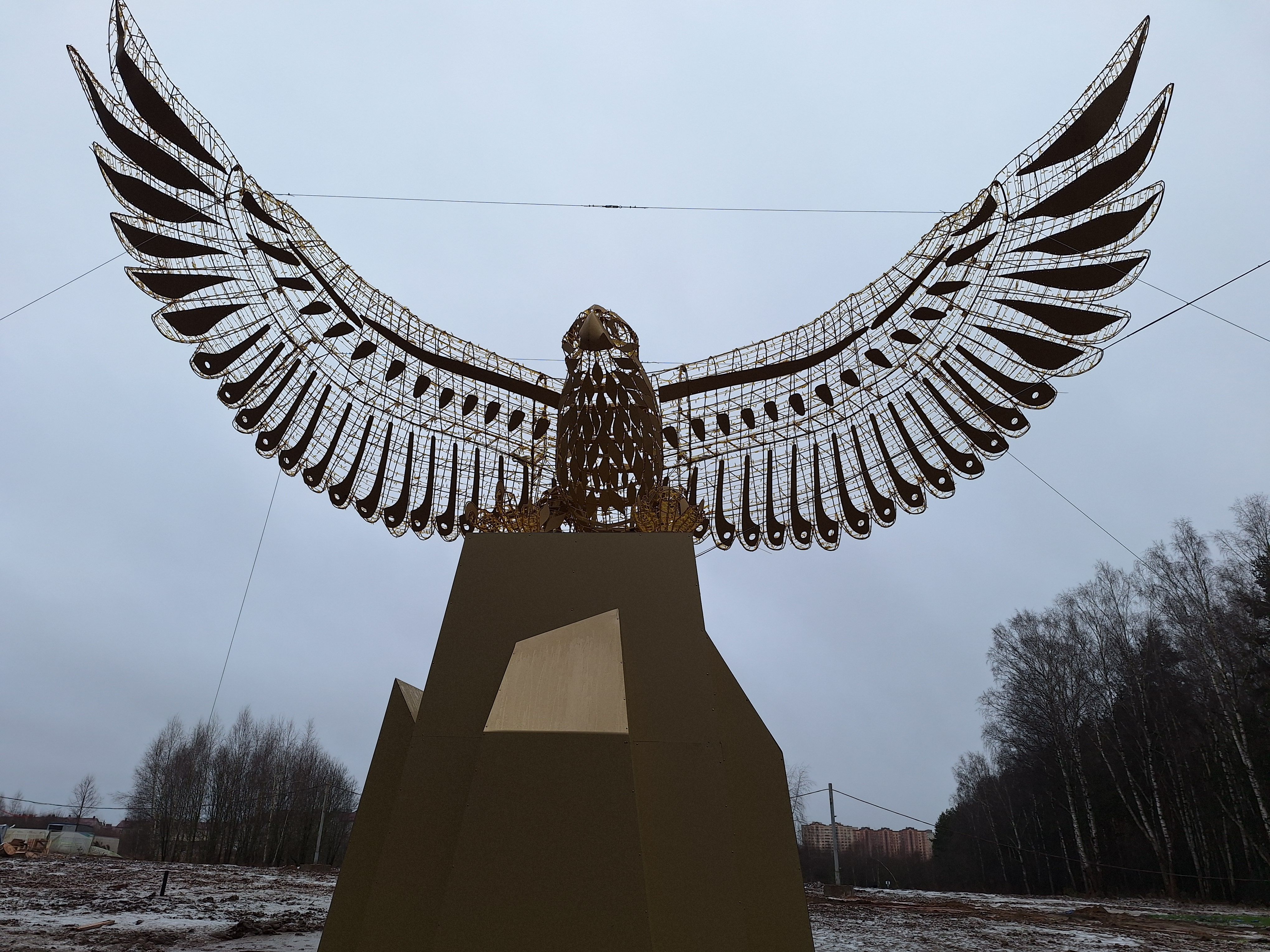 Ранее в парке установили 16-метровую ель, а на днях появился огромный сокол.