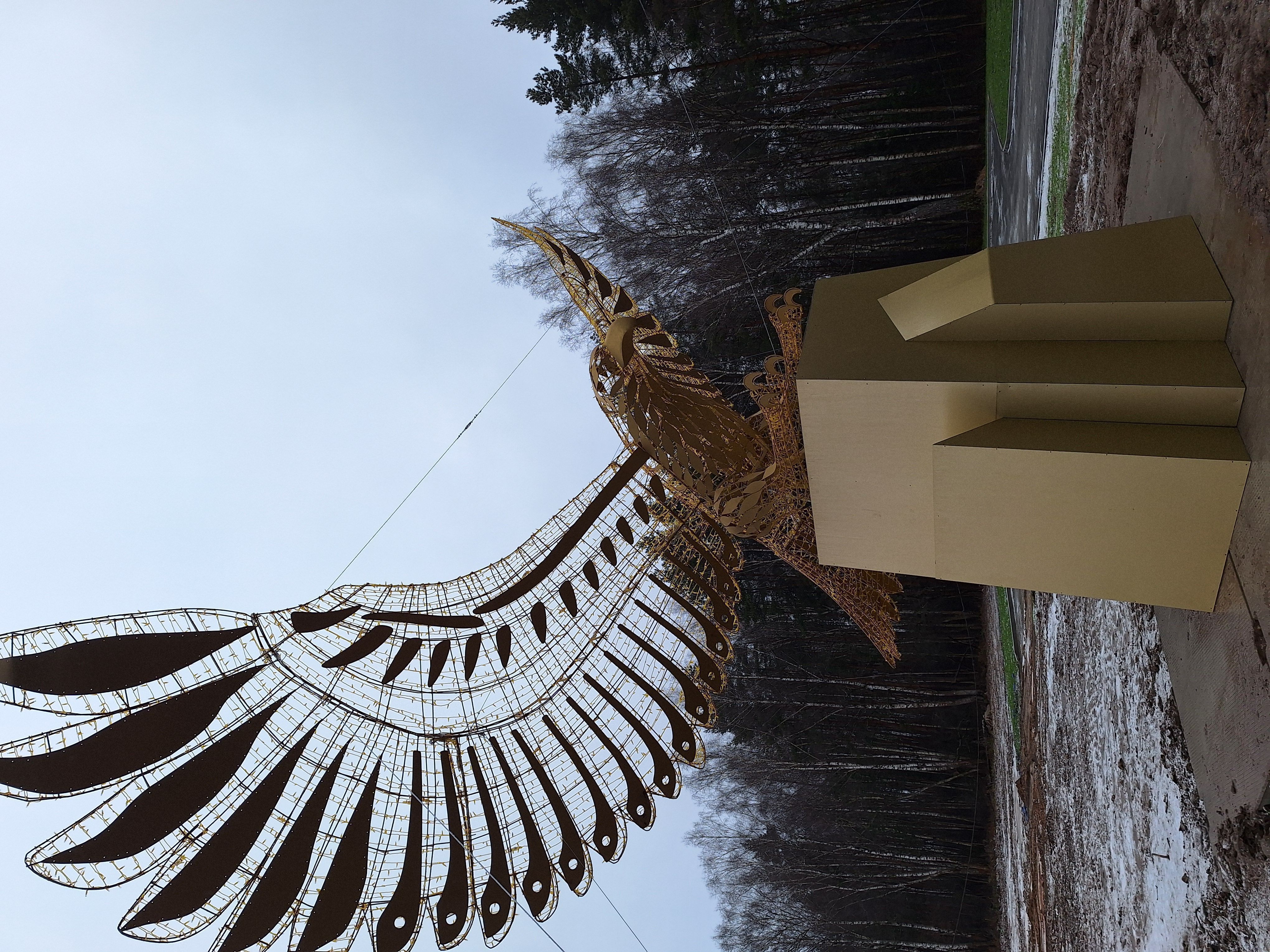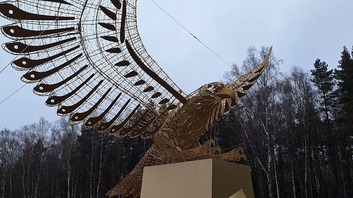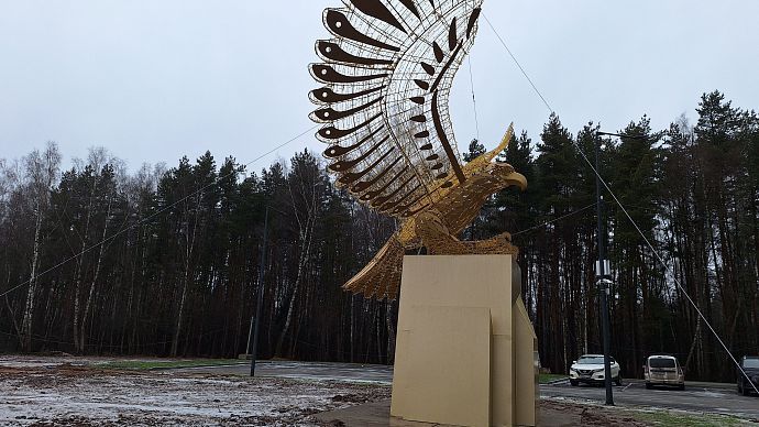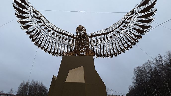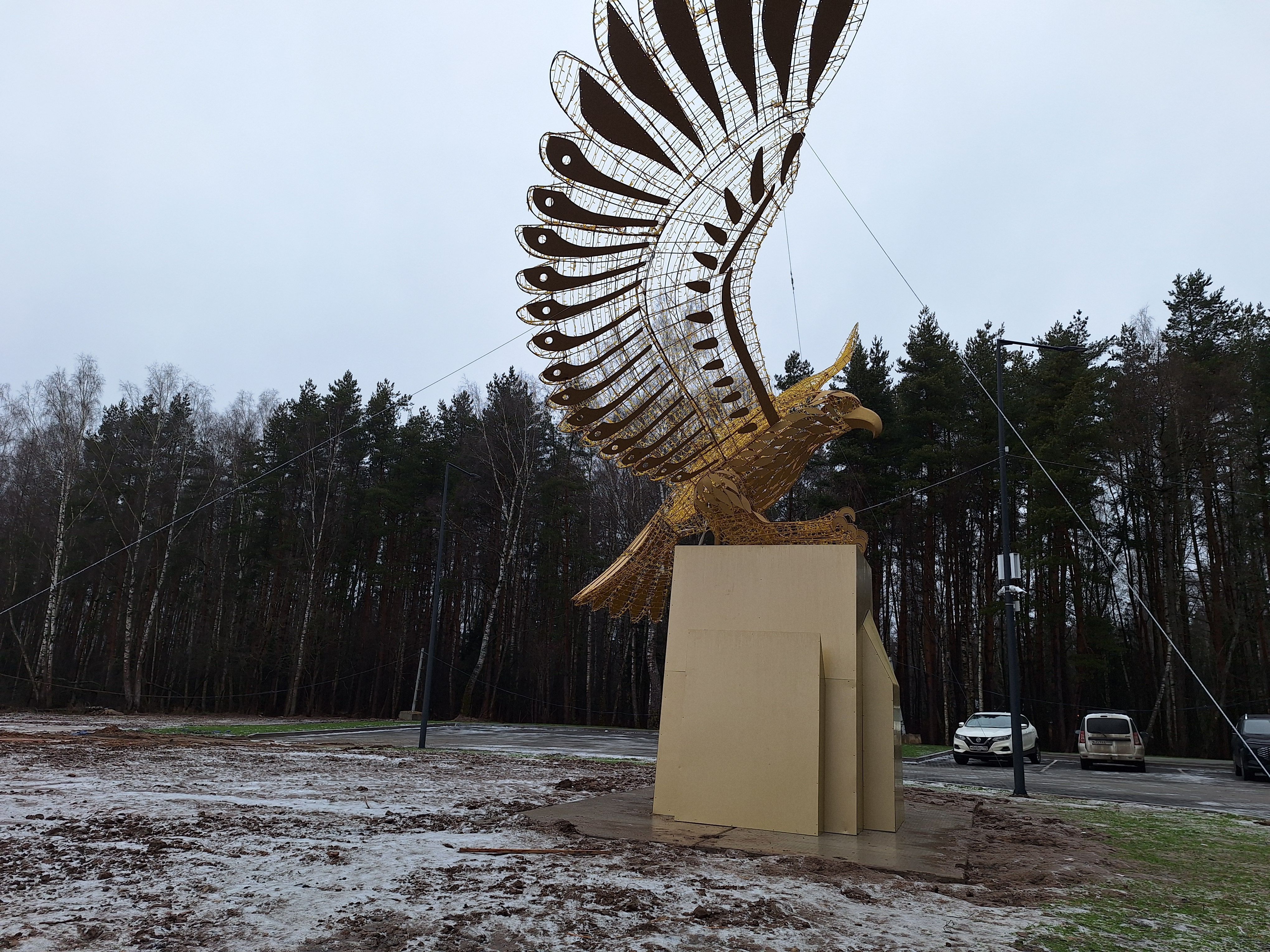 Гостей лесопарка «Соколка» встречает на входе огромная птица