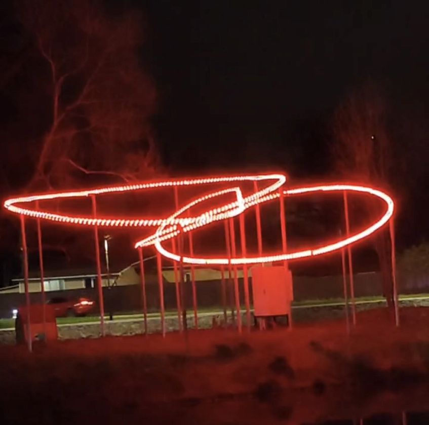 Недавно птицы вернулись на насиженные места, но их ждал сюрприз. Световая конструкция вспыхивает разными цветами, освещая территорию вокруг.