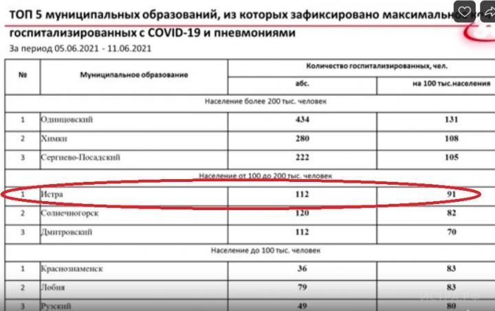 За период с 05.06 по 11.06 в округе было госпитализировано 112 человек с ковидом и пневмонией.