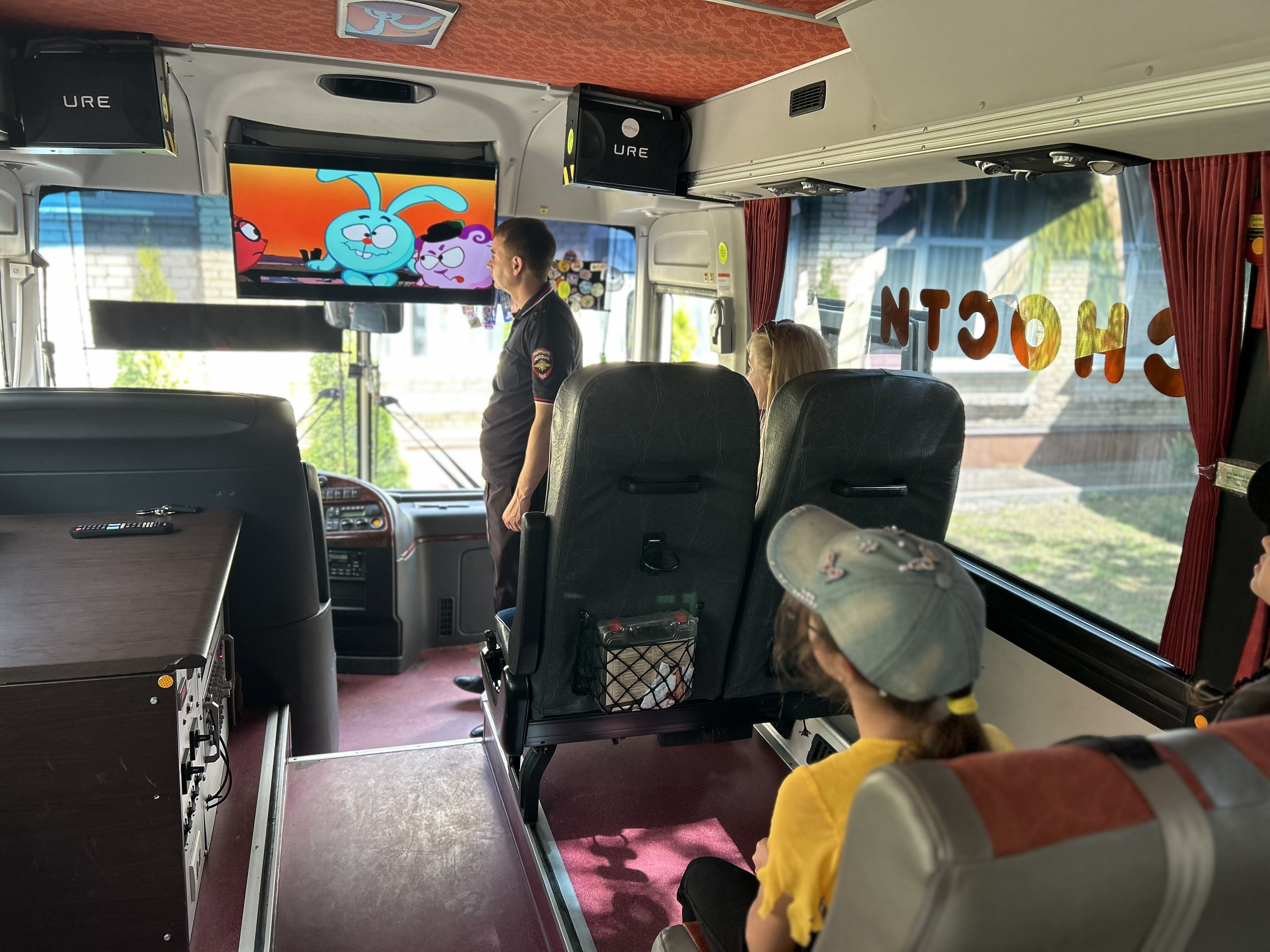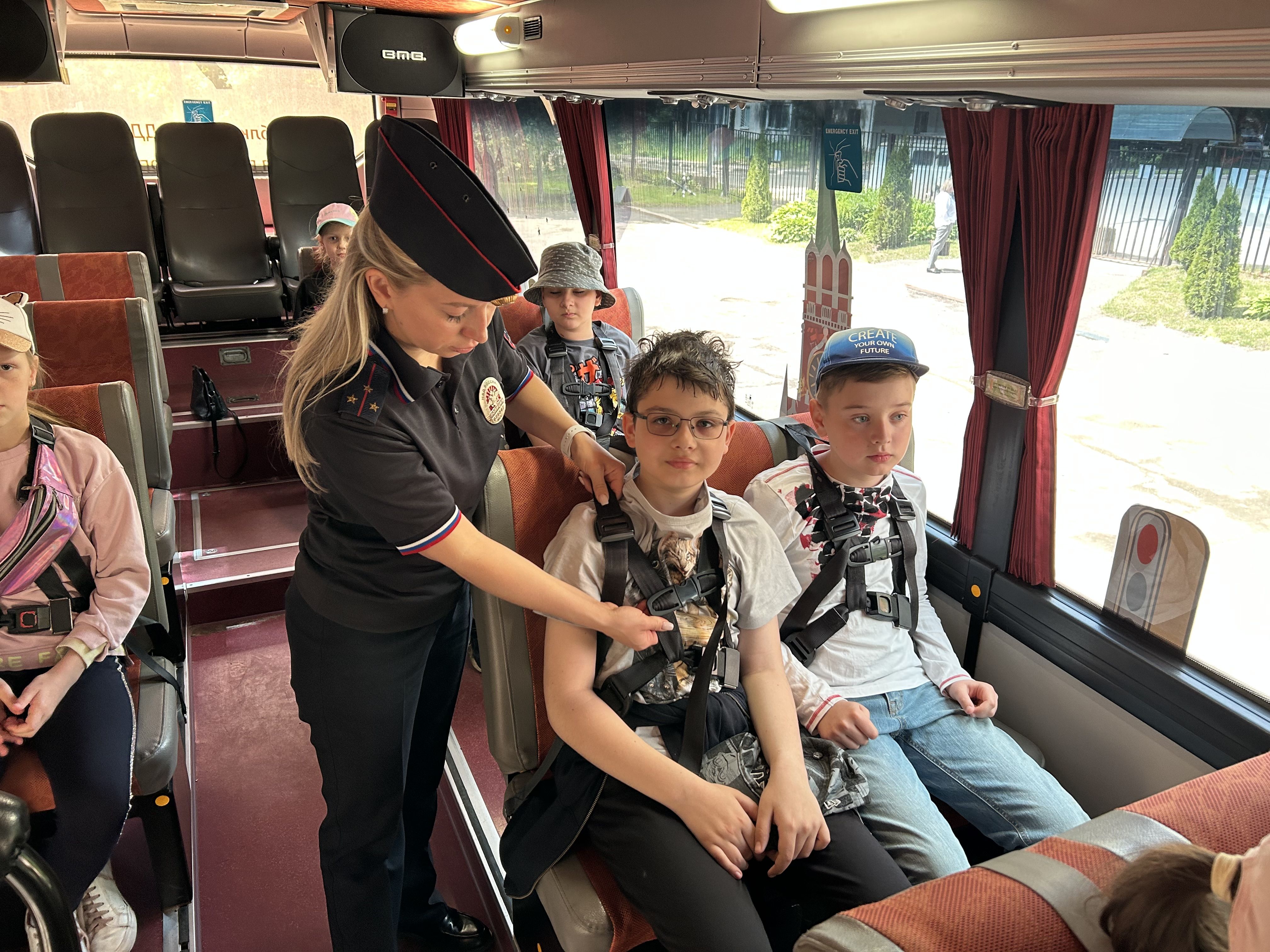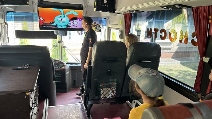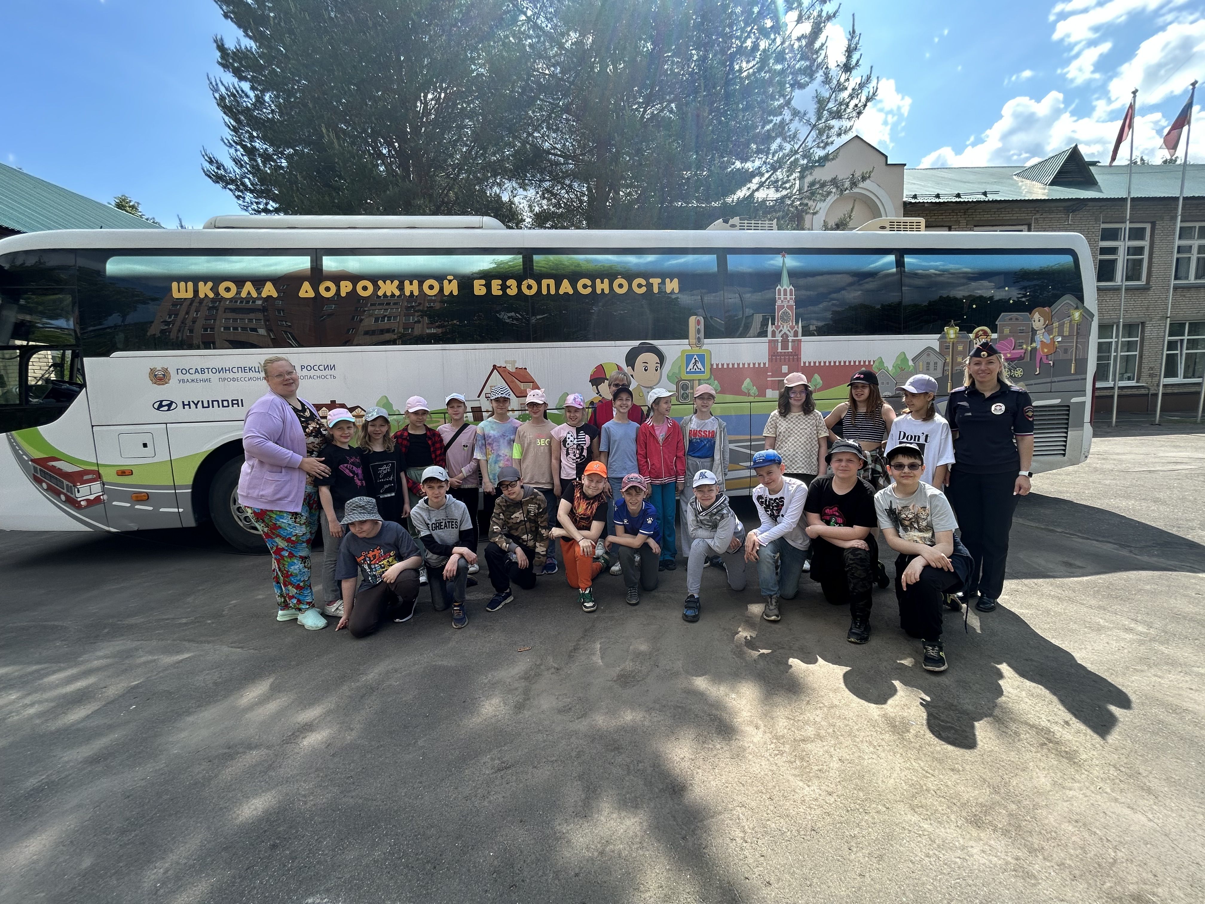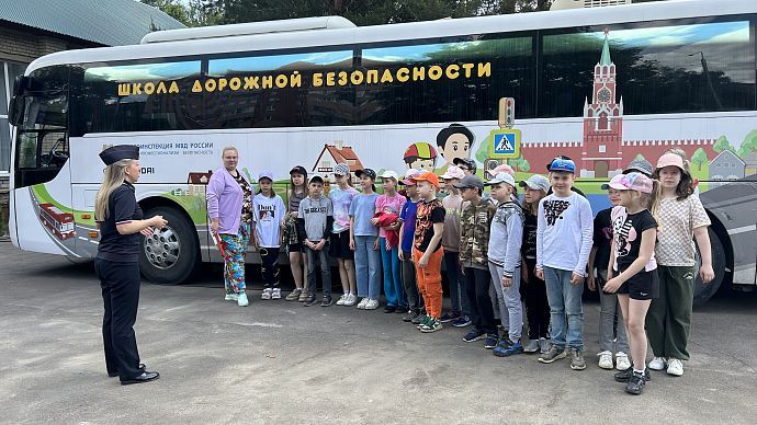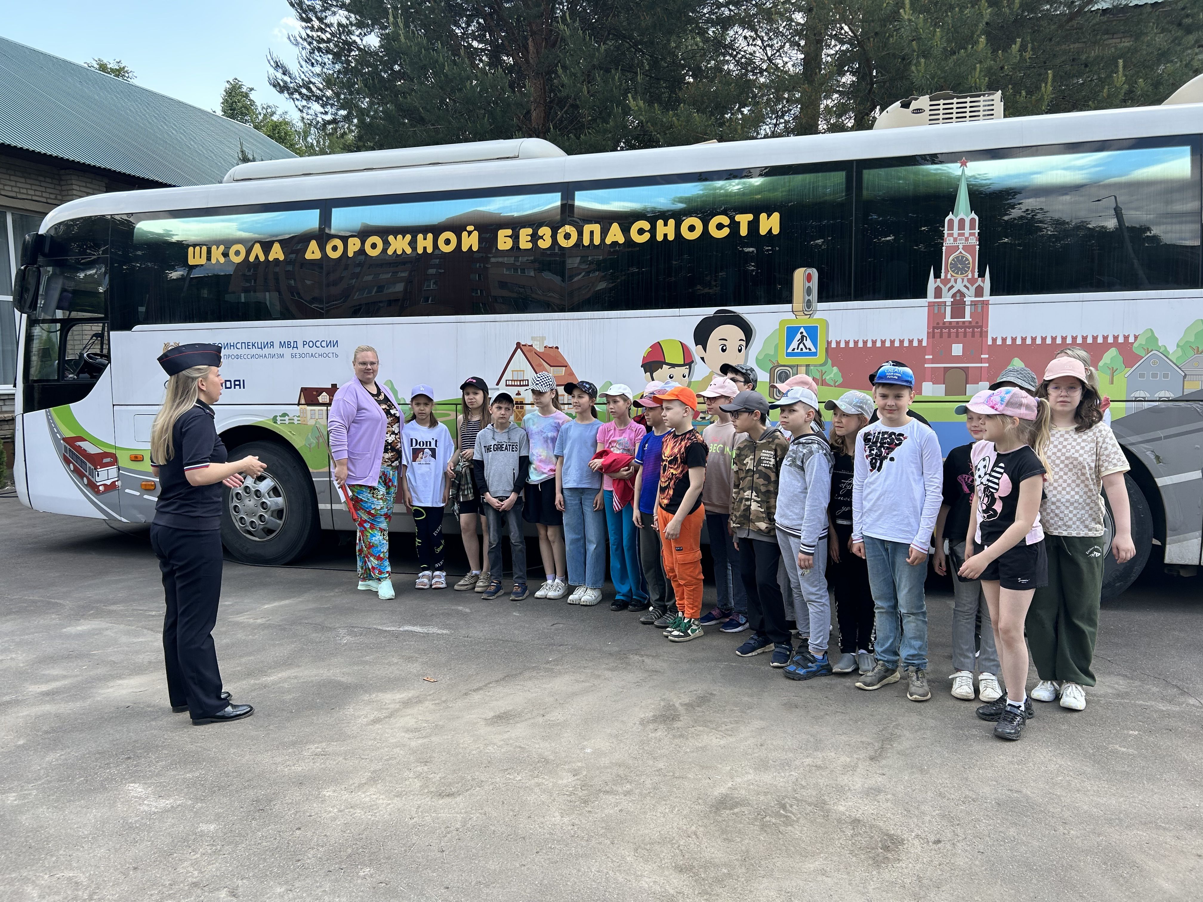 Сотрудники Госавтоинспекции городского округа Истра провели занятие по правилам дорожного движения в уникальном автобусе-тренажере. Ученики школьного лагеря побывали в воображаемом путешествии.