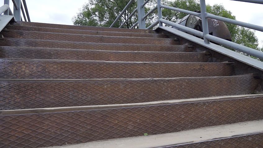 Но вот попасть сюда людям с колясками, велосипедами — очень сложно. Дело в том, что путь к пляжу идет через мост. К мосту надо спуститься по лестнице, а после мостика ещё один спуск и тоже — по ступенькам. Жители Истры в чате «Истра онлайн» неоднократно обратились к местной власти с просьбой установить на лестницах пандус: