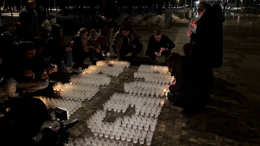 А вечером горожане зажгли тысячу свечей. Они образовали слова «Крокус. Скобим». Несмотря на дождь, жителям удалось зажечь каждый огонёк.