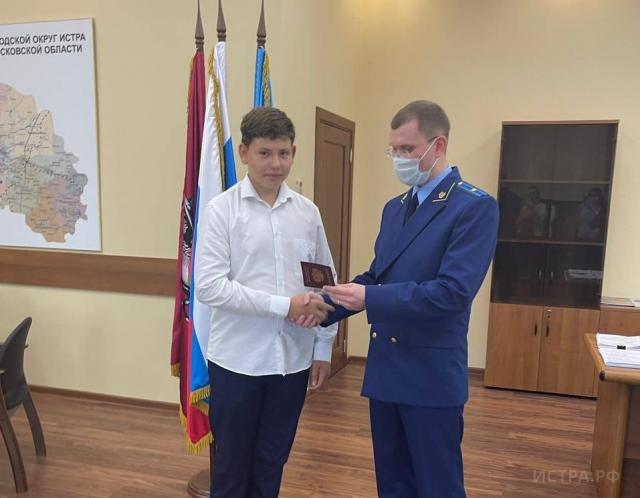 В преддверии Дня России 11.06.2021 Истринский городской прокурор Михаил Рузляев совместно начальником миграционного пункта 1 Отдела по вопросам миграции ОМВД России по городскому округу Истра Константином Федосенко вручил паспорта 14-летним жителям городского округа Истра.