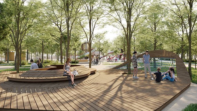 Например, рядом с парком находится отделение Всероссийского общества слепых. Их запрос — сделать на территории проектирования навигацию с тактильной плиткой. Это в проекте учли, как и другие решения для маломобильных граждан, не только людей с ограниченными возможностями здоровья, но и родителей с колясками: пешеходные маршруты и переходы проездов и дорог будут спланированы без перепадов.