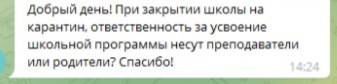 В окружном чате «Истра. Образование» родители интересуются, а кто в таком случае несёт ответственность за образовательный процесс — родители или педагоги?