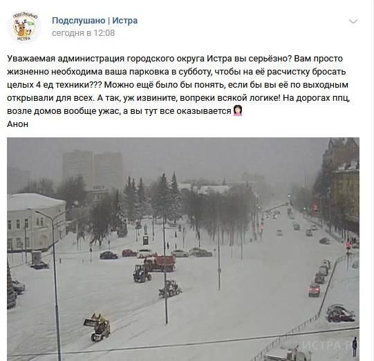 Понятно, что огромное количество снега, выпавшего за последние сутки, убрать быстро невозможно. Истринцев просят с пониманием отнестись к сложившейся на улицах и дорогах ситуации. Однако в соцсети ожидаемо много жалоб.