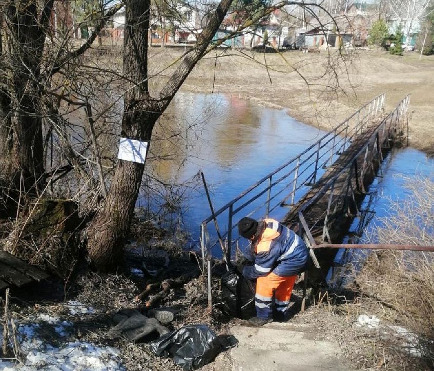 Коммунальщики убрали мусор у затопленного моста в Лучинском