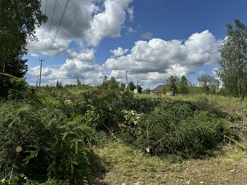 Вблизи деревни Зенькино в СНТ «Луна-3» из-за расчистки охранной зоны ЛЭП вырубается защитная лесополоса, отделяющая садовые участки от дороги.