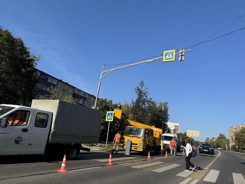 На улице 9-й Гвардейской Дивизии ремонтируют пешеходный светофор