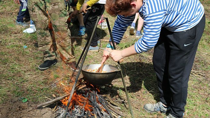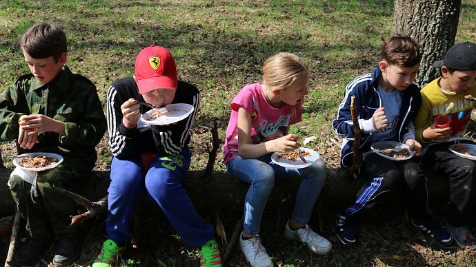Пока судейская коллегия подводила итоги соревнований, была организованна традиционная солдатская кухня. Все желающие смогли по достоинству оценить вкус настоящей каши, приготовленной под открытым небом на костре.