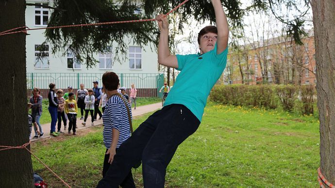 Всё по-взрослому! На пути полосы препятствий участников ждала настоящая «Канатная дорога». На этом объекте участники показали свою спортивную подготовку: кто-то впервые проходил по верёвкам, а кто-то с ловкостью преодолевал заданное расстояние и быстро оказывался у цели.