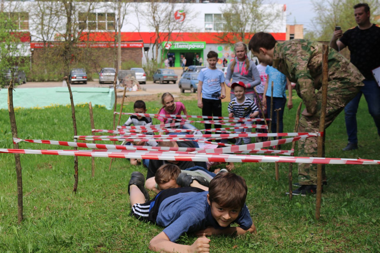 После испытаний на ловкость юных игроков ждали испытания и на меткость. Пришлось метать гранаты. Заключительным, четвёртым этапом полосы препятствий стало преодоление «простреливаемого» участка по-пластунски.