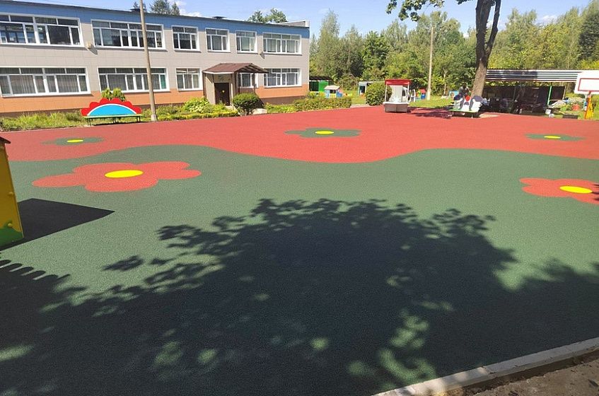 На прогулочной площадке для дошколят уложили резиновое покрытие