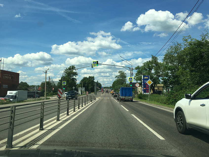 На «зебре» в районе завода «Сокол» в Дедовске установлен светофор, оснащённый кнопкой для пешеходов и звуковой сигнализацией.