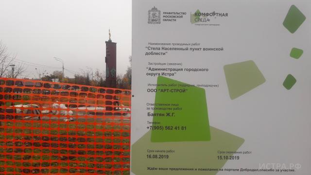 Стела «Населённый пункт воинской доблести» в Снегирях почти готова. Компания ООО «Арт-строй» приступила к заключительной стадии работ.