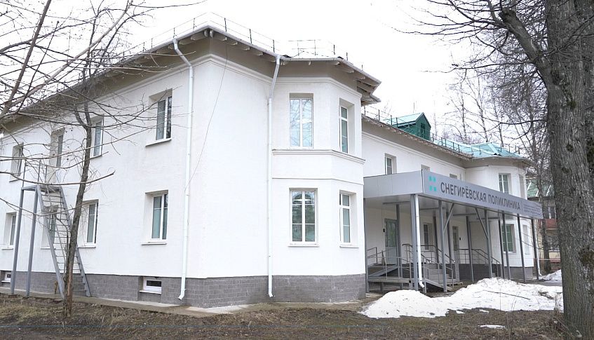 В середине прошлого года строители начали ремонтировать фасад здания, затем приступили к внутренним работам. На время ремонта врачи не остановили приём, а переехали в соседние медицинские учреждения. Всего к поликлинике в Снегирях прикреплено 10 тысяч взрослых и 2 тысячи детей. Кстати, ремонт лечебницы был произведён отчасти и благодаря такому большому населению — многие пациенты жаловались на удручающее состояние здания.