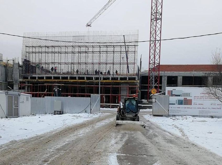 В настоящее время в строительстве школы занято 60 строителей и 4 единицы техники.