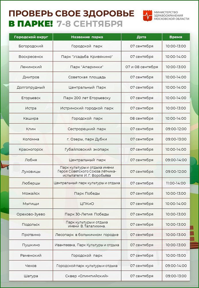 Акция пройдёт в 24 городских округах Московской области. В Истре выездная бригада врачей будет работать 7 сентября с 9:00 до 13:00. График размещён на портале Министерства здравоохранения региона.