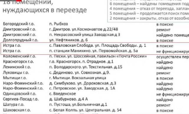 К слову, на территории г.о.Истра расположено 21 почтовое отделение. Из них 14 - в неудовлетворительном состоянии, что составляет 67%.