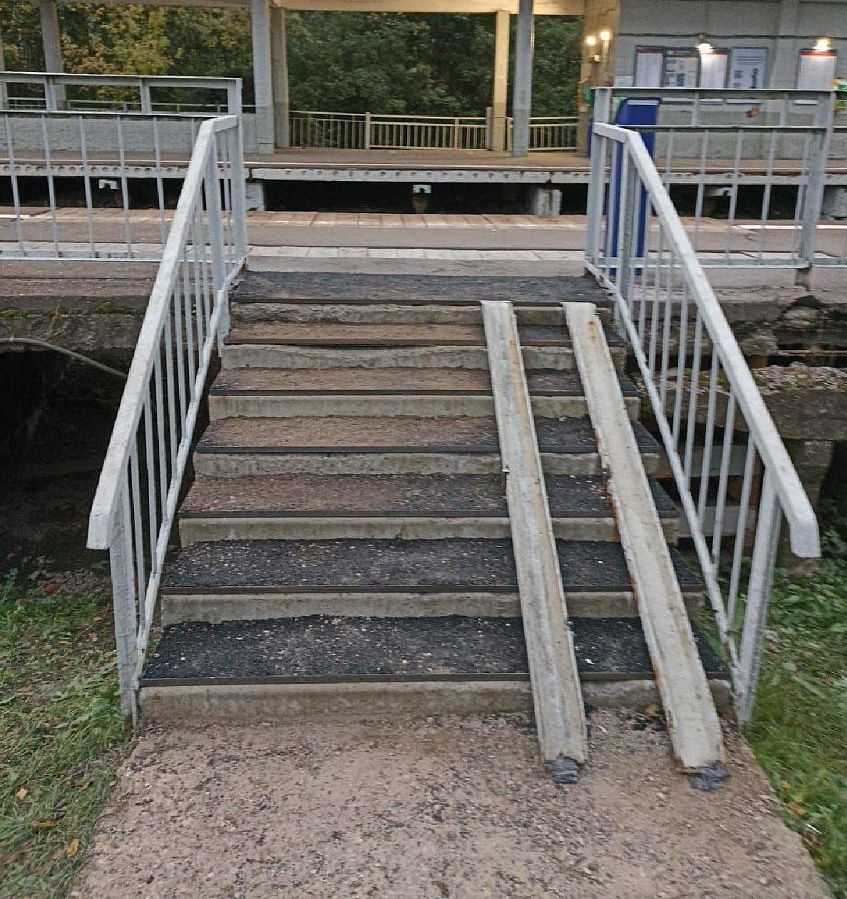 Напомним, текущий ремонт на платформе выполнялся весной этого года. Тогда аварийные ступеньки были просто замазаны краской.