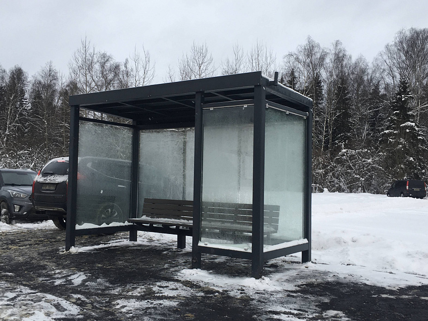 Для удобства пассажиров общественного транспорта на автобусной остановке «50-й километр» на Волоколамском шоссе установлен новый павильон. Он выполнен из металлического каркаса и ударопрочного стекла.