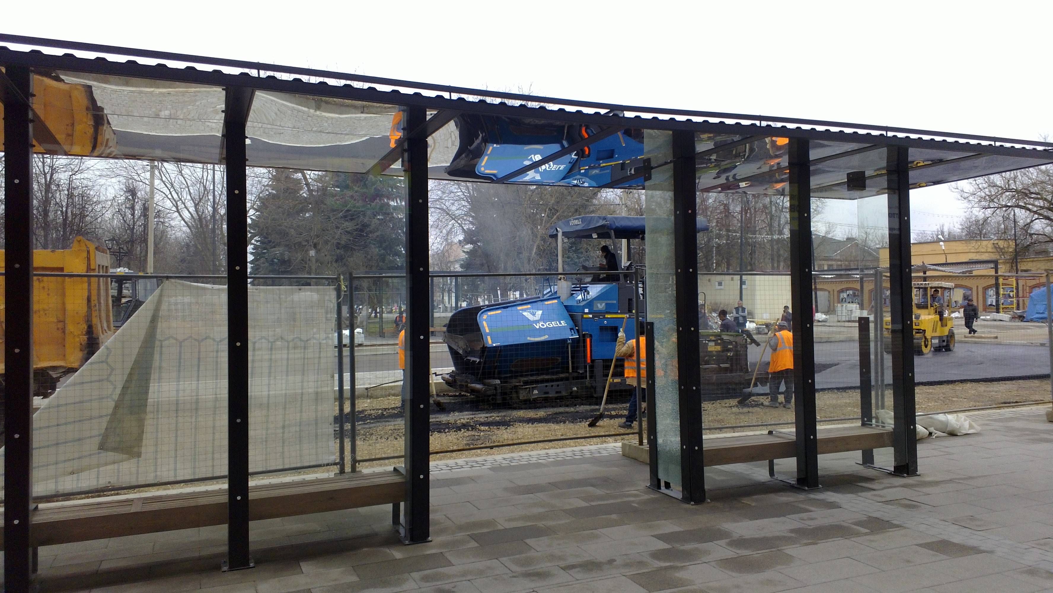 В настоящее время на площади ведутся работы по укладке асфальта. Здесь же появился новый автобусный павильон и так называемый "островок безопасности".