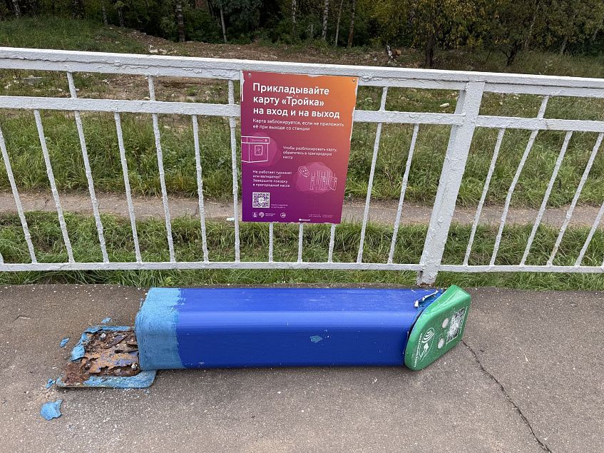 Это произошло в минувшие выходные. По словам очевидцев, 28 сентября пассажиры обнаружили, что два валидатора разбиты, а один вырван. Кроме того, повреждён терминал для покупки билетов.