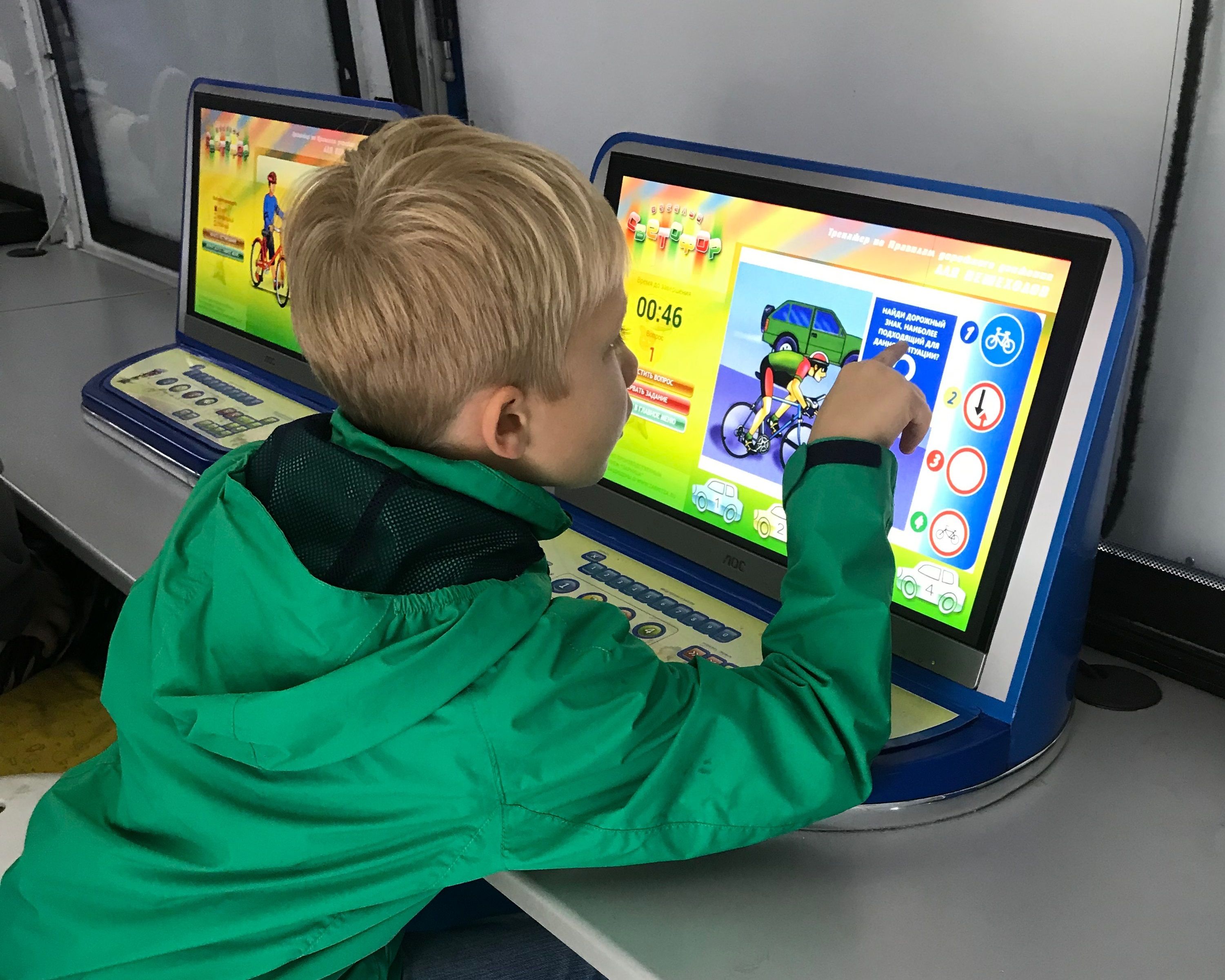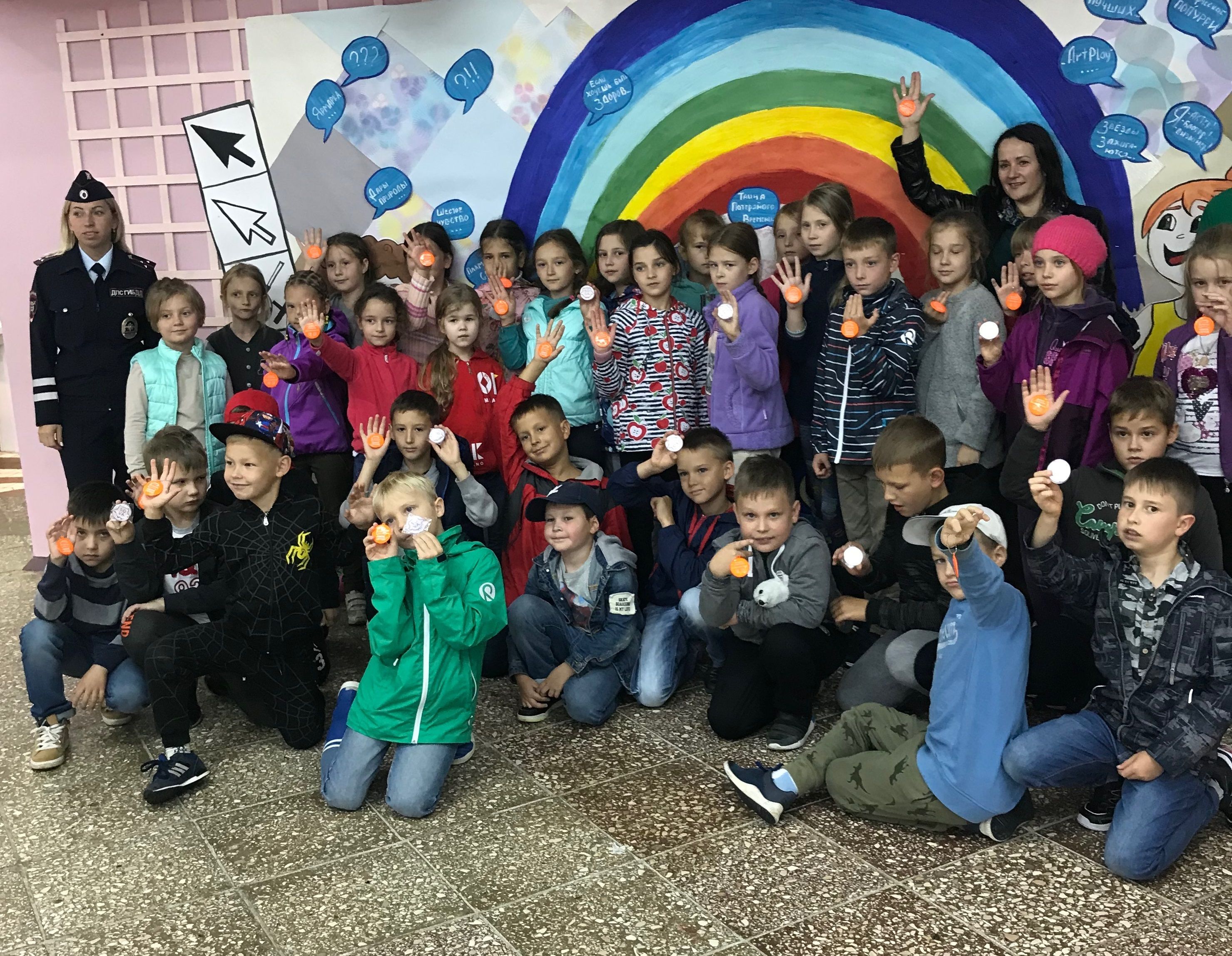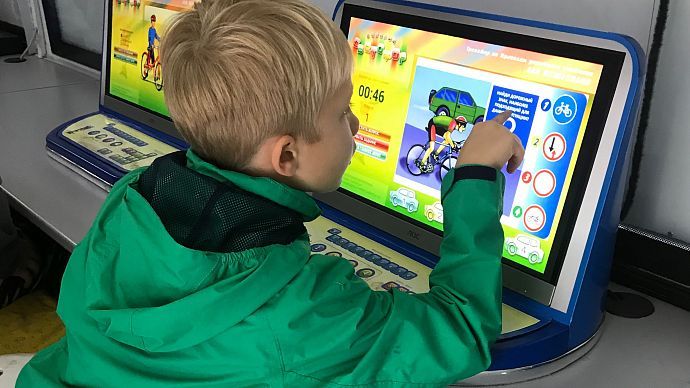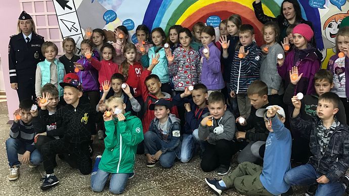 ебята повторили значения основных дорожных знаков, как безопасно передвигаться на велосипедах, самокатах и скейтбордах в городе, вспомнили, как правильно переходить дорогу и быть ответственными пешеходами. Каждый смог стать участником дорожного движения, сев за руль детского симулятора автомобиля или велосипеда. Все участники получили памятки по Правилам дорожного движения и обязательный аксессуар на одежде — светоотражающий брелок.