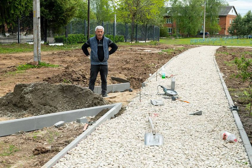 Асфальтированные пешеходные дорожки прокладывают на улице Центральной.