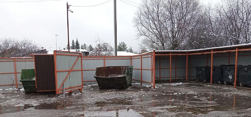 После жалобы на ненормативное состояние площадки мусор вывезли, однако лужа так и осталась на своём месте.