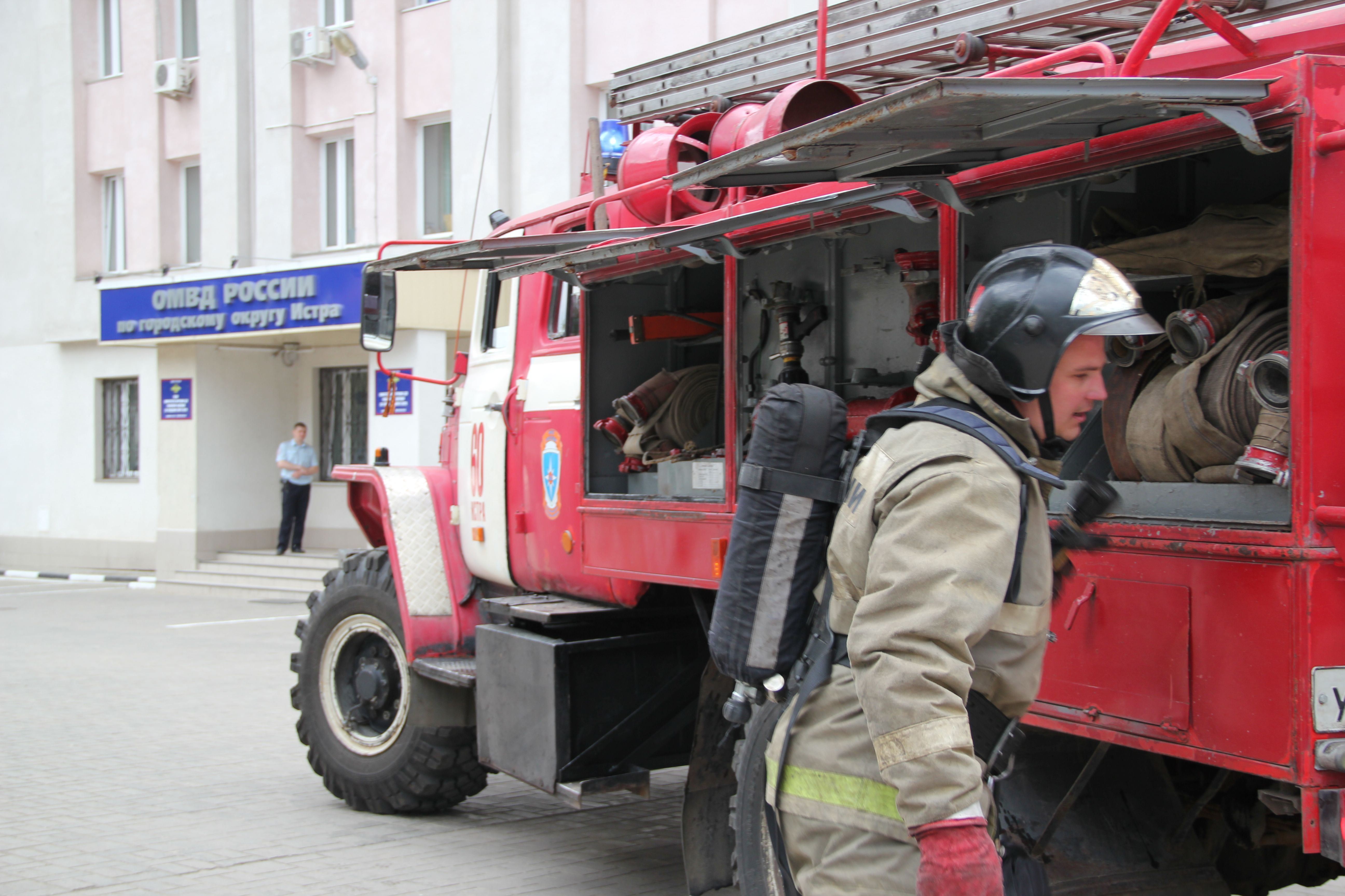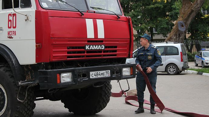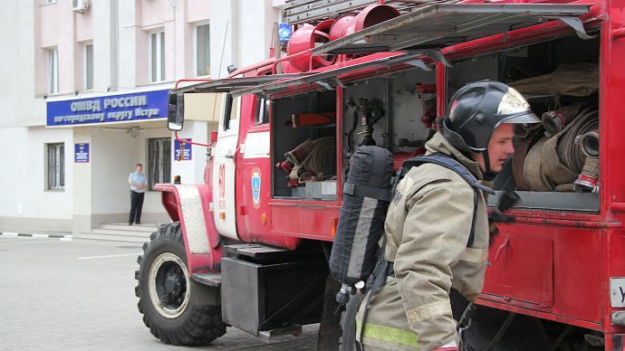"Сегодня у нас прошли пожарно-тактические учения на территории здания ОМВД по г.о. Истра. Целью было отработать практические действия по тушению пожара, спасению людей и эвакуации пострадавших, - разъясняет журналистам заместитель начальника пожарно-спасательной части г.о. Истра, старший лейтенант внутренней службы Станислав Максимов. - Спасатели разделены на три звена: одно организовано для спасения и поиска пострадавших, второе — для тушения пожара, третье — для защиты смежных помещений, в том числе третьего и других этажей. Общая площадь "возгорания" составила примерно 40 кв. метров. С помощью спасательного устройства пострадавшего удалось спасти".