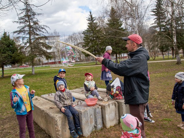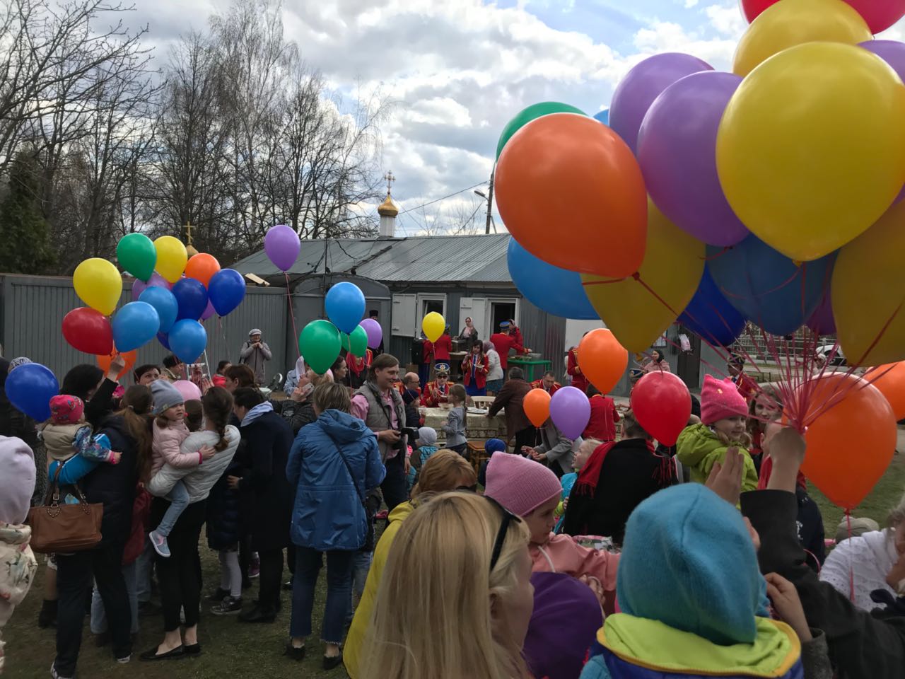 Вчера днём возле Мироносицкого храма в Истре было весело и уютно: любимые песни играл Истринский духовой оркестр, семьи отдыхали, ели солдатскую кашу и пили чай, дети участвовали в мастер-классах по изготовлению тряпичных куколок и выдуванию мыльных пузырей.
