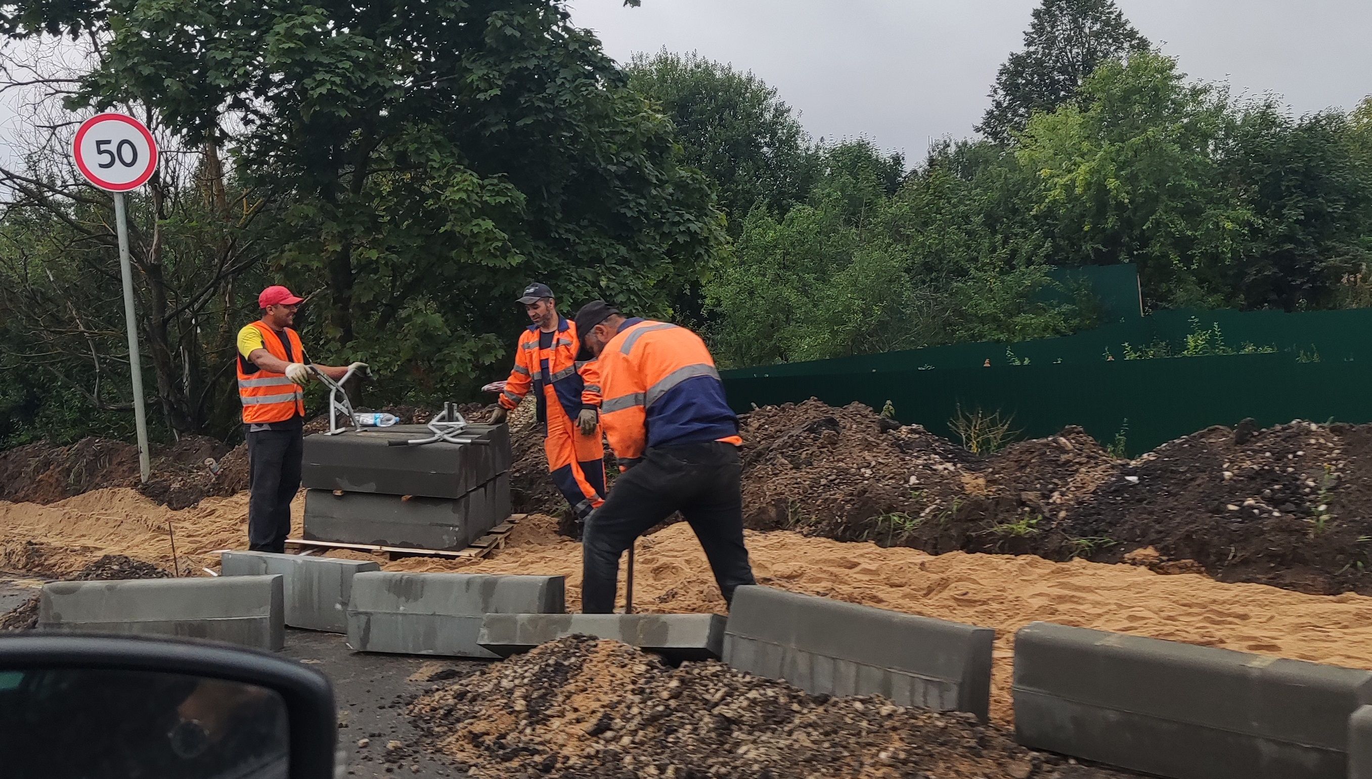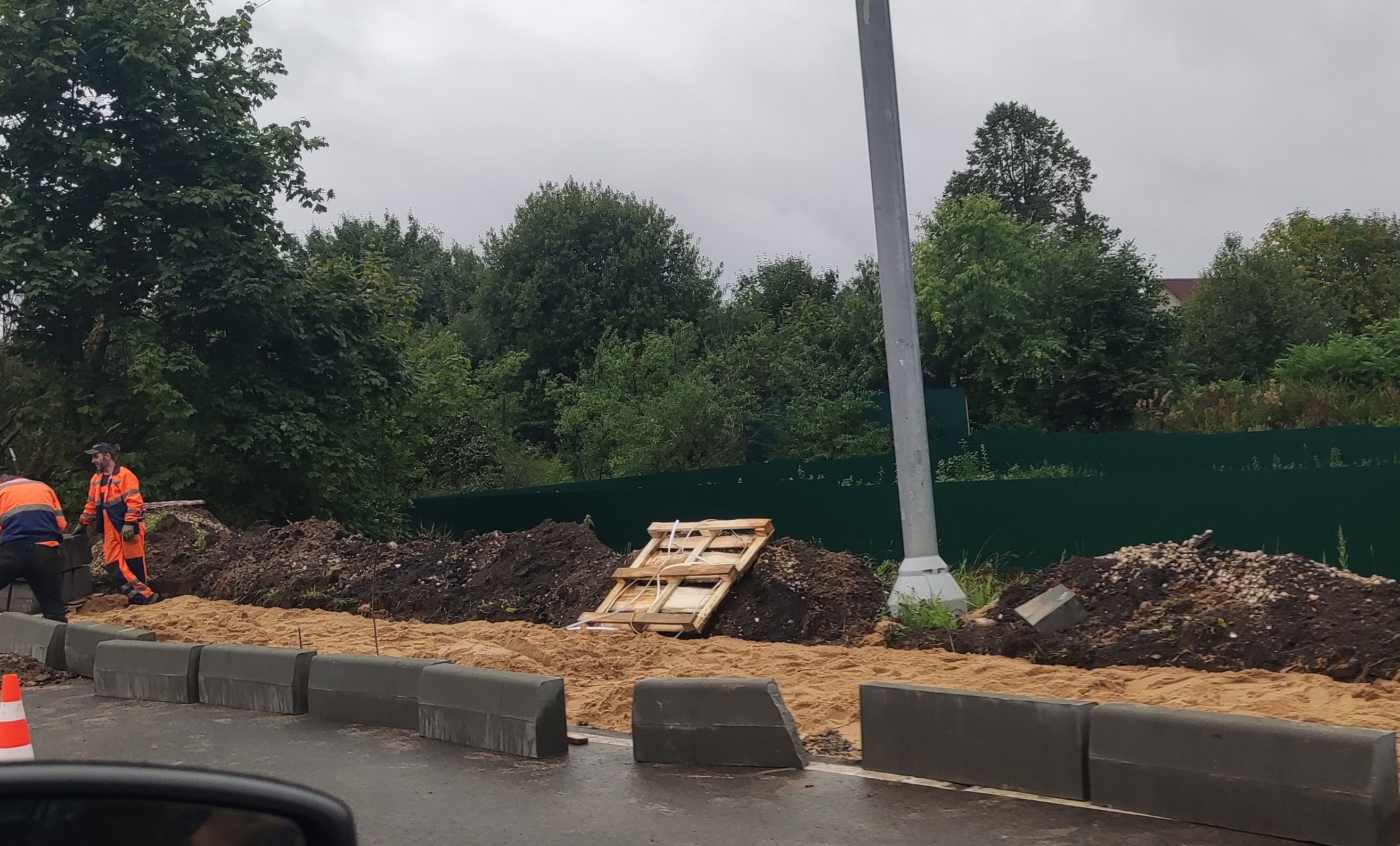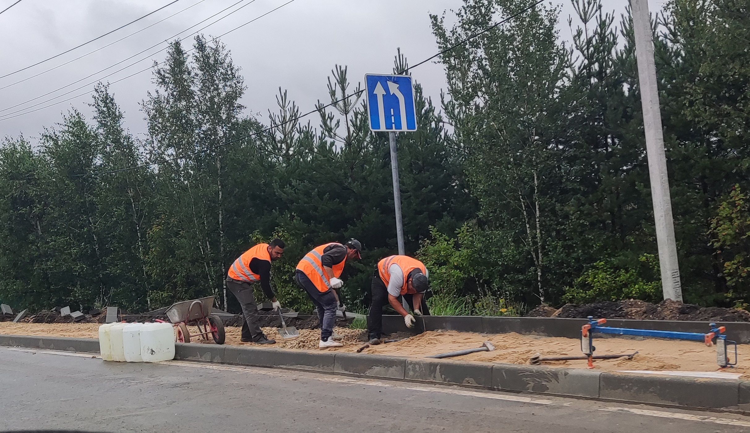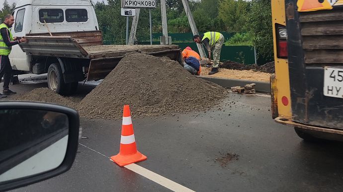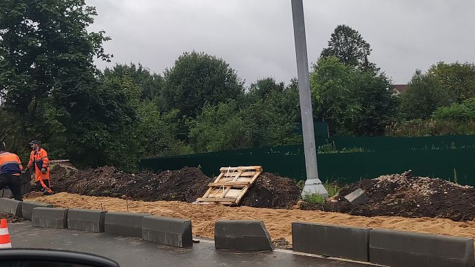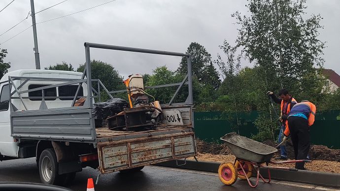 Бригада рабочих трудится не покладая рук, в независимости какая погода за окном. А как же иначе. «Маринин (заявительница — уточн. автора) тротуар мы в июле начнём и закончим в августе, тротуар будет сделан как с одной стороны дороги — 300 метров, — так и с другой стороны», — было обещано чиновниками.