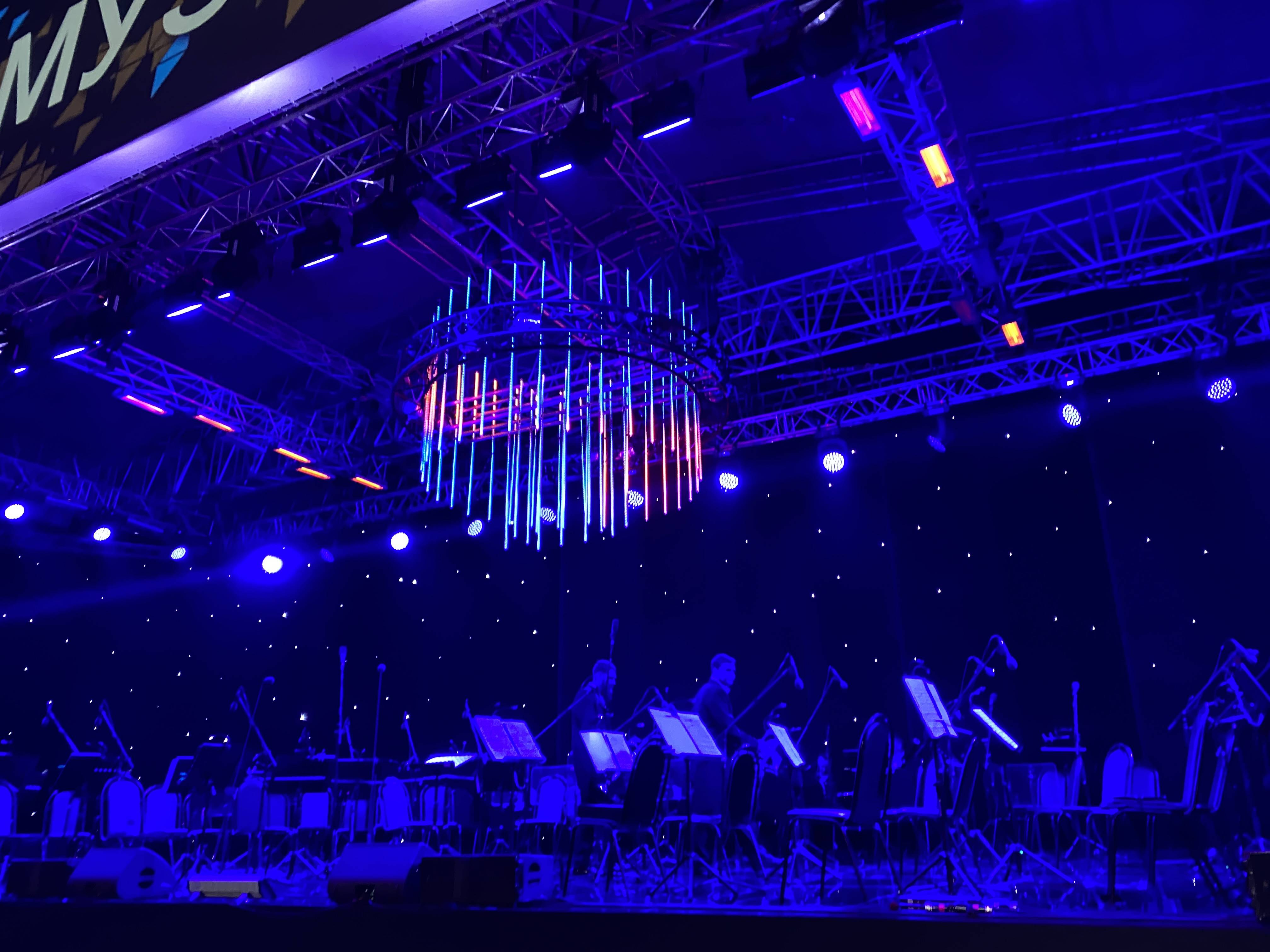 Замысел удался. Невероятно элегантная сцена уютно разместилась в атриуме перед музеем.