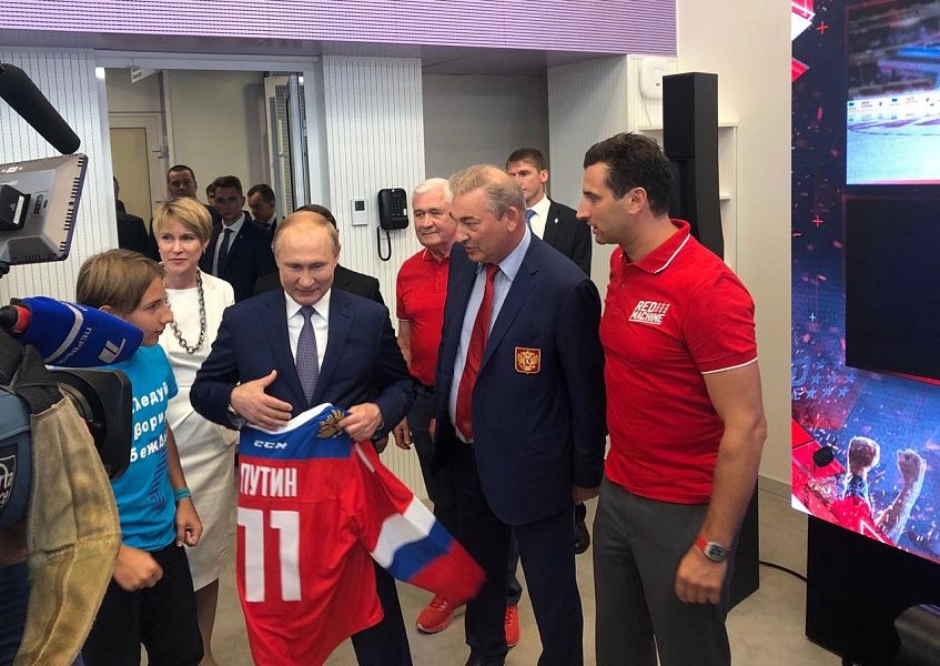 На встрече в образовательном центре «Сириус» Владимиру Путину подарили хоккейный свитер «Красная Машина».