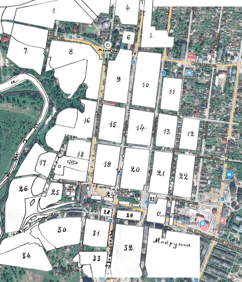 Компьютерное совмещение карт Истры XIX и XXI вв.