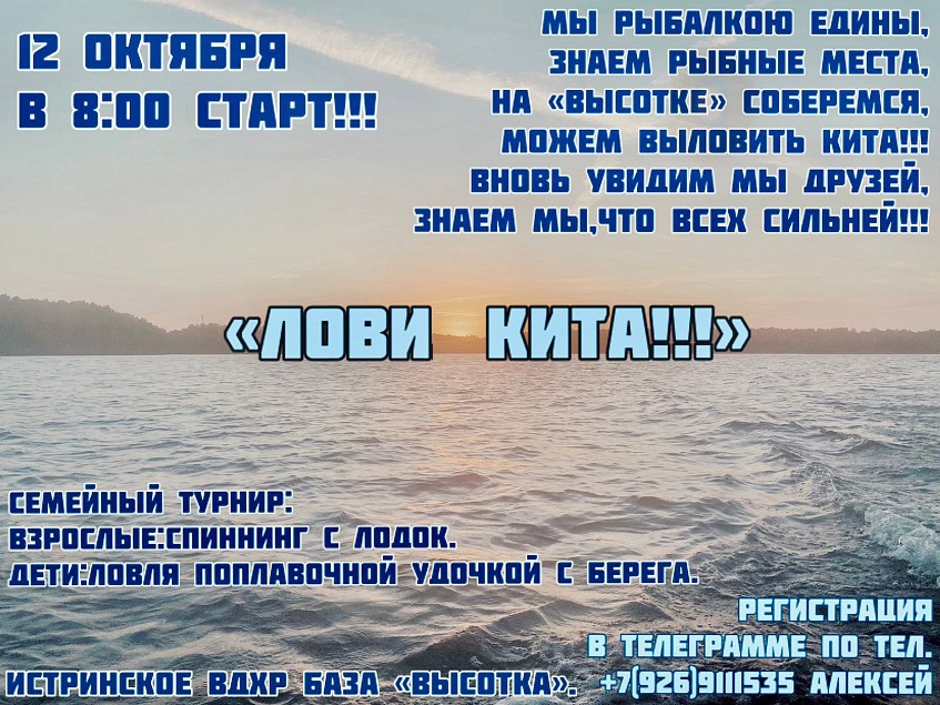12 октября в пансионате «Высотка» состоится семейный рыболовный турнир «Лови кита».