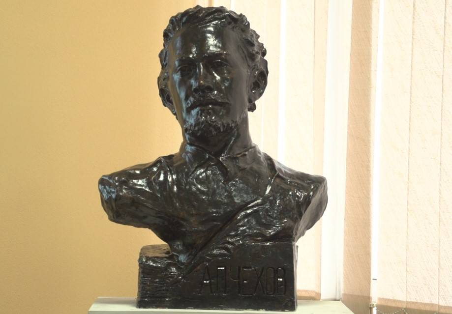 Бюст Антона Павловича изготовлен из гипса, тонирован под металл. В планах перевести скульптуру в бронзу.