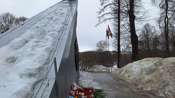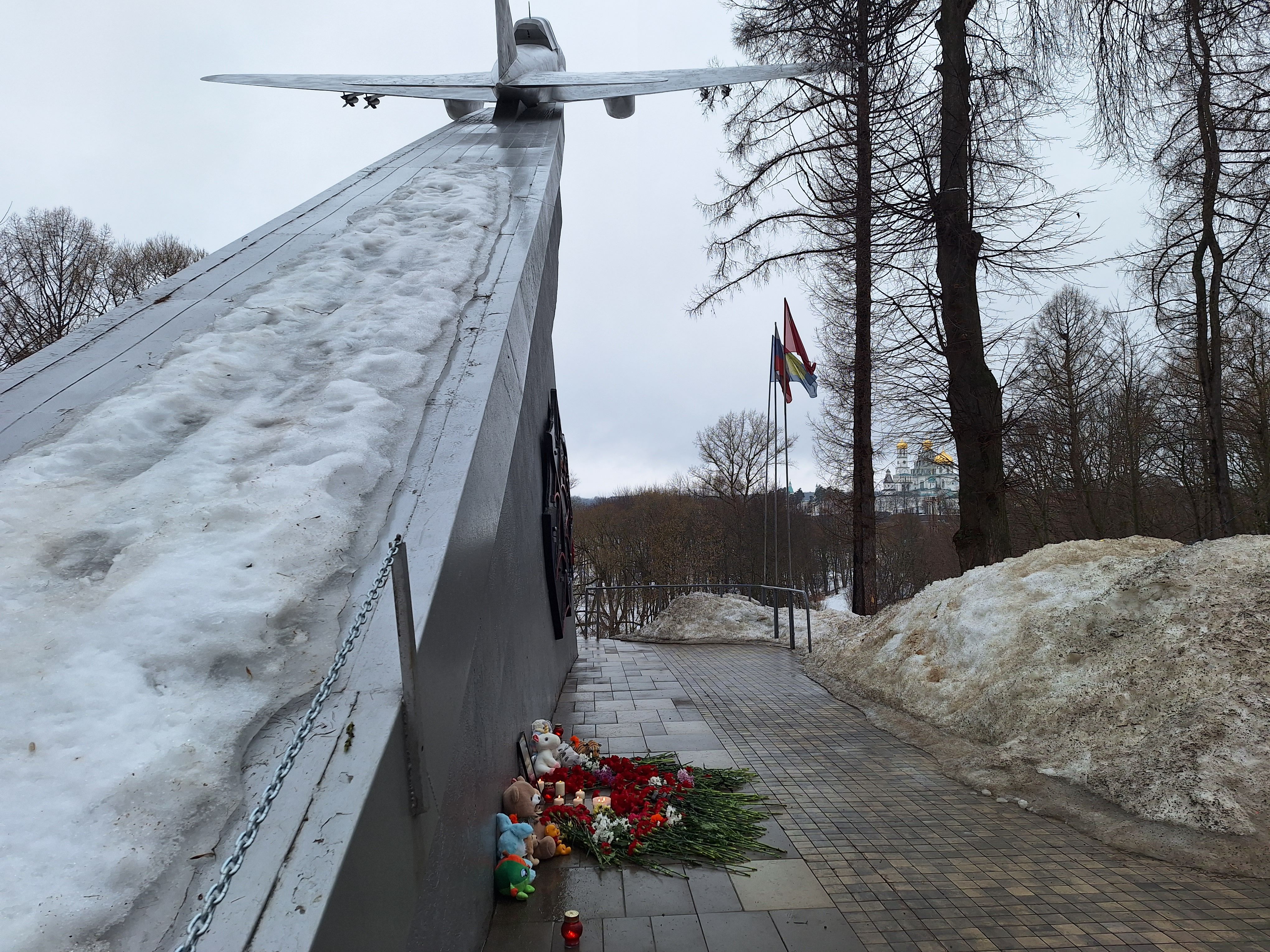 Стихийный мемориал, куда жители приносят цветы в память о мирных людях, погибших от рук террористов, появился и в Истре, в центральном городском парке у самолета «ИЛ-2».
