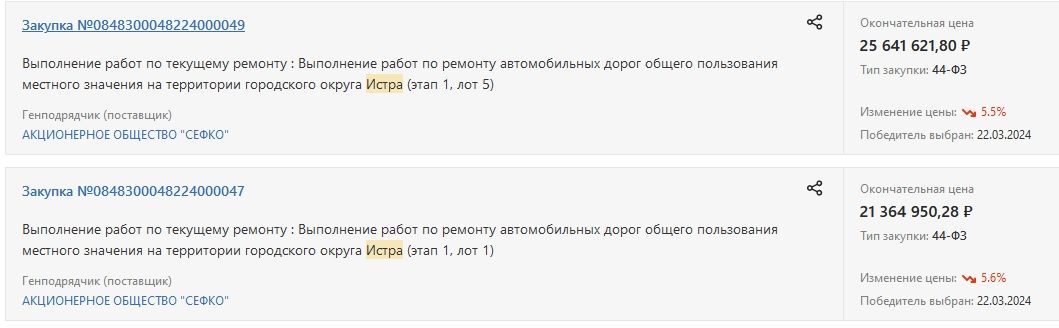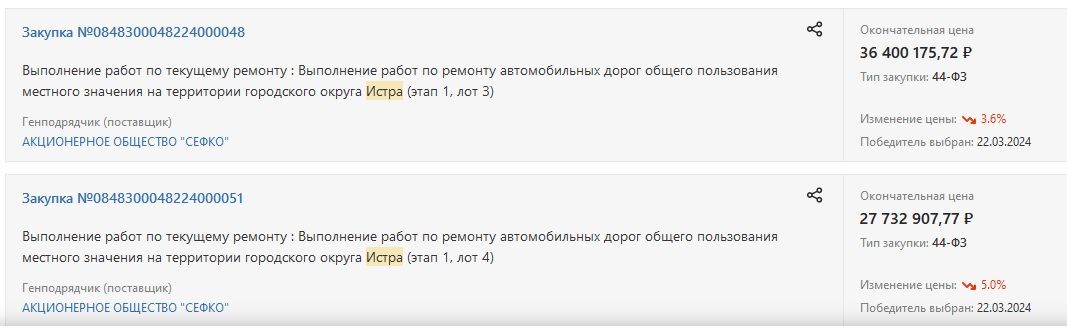 На первый этап ремонта муниципальных дорог выделят около 140 миллионов. Четыре лота из пяти достались одному и тому же подрядчику, АО "СЕФКО". Оставшийся лот выиграл индивидуальный предприниматель Мхиян.